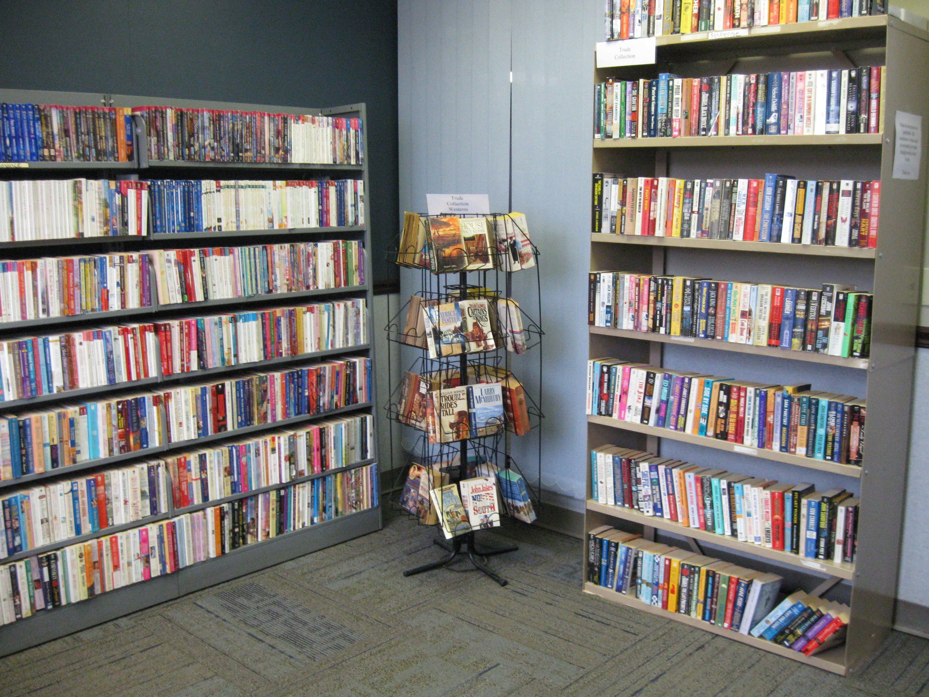 The Paperback Trade Program is open to everyone. No library card is necessary. Pocket-sized paperbacks in good condition may be exchanged evenly.